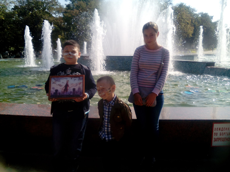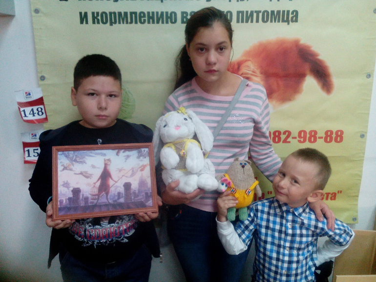 Выставка интересная, много кошек разных пород. Мы там долго бродили. Дети рисовали, а потом Рафаэль и Степа стали кошечкой и тигренком-им нарисовали на лице аквагрим