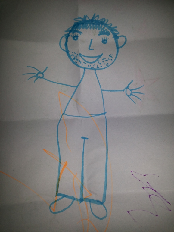 Папа Васе понравился, так как она его немного раскрашивала (чем больше ей нравится мой рисунок, тем сильнее она его раскрашивает). А потом сказала Васе (обращаясь к папе): «А теперь папа тебе нарисует маму!».