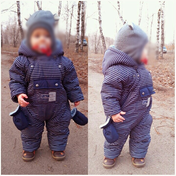 Лёгкий, тёплый, не маркий. Не замерзли ни разу. Носили в коляске всю зиму, и пару раз ходили, когда начали ходить. Состояние идеальное. Наш любимый комбез) Стирала один раз спец. средством. Подробные фото и замеры по желанию. В комплекте рукавички и пинетки.