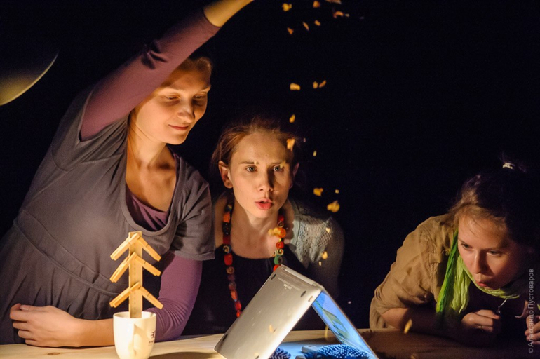 Александра Ловянникова, режиссёр: «Я поставила этот спектакль, потому что всю жизнь работаю с бумагой и знаю, что из нее можно создать все, что угодно. Сначала актёры делают из бумаги весь мир, а потом, во время мастер-класса, дети сами учатся каким-то простейшим вещам - и я надеюсь, что, придя домой, они захотят это повторять и развивать».