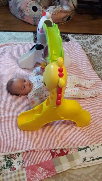 В этом месяце сделали массаж теперь жду от неё новых умелок. Уже начала на бочок заваливаться , но пока не понимает как ногу закинуть.