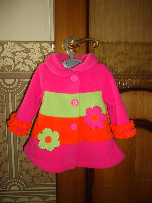 Пальто из толстого флиса + шляпка. Без подклада. Размер 18 мес (мне показалось слегка маломерит). Надевали пару раз. Цена 1000р.