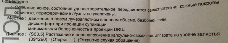 Вернувшийся с работы муж посмотрел на всё это и вызвал санитаров вывез меня к травматологу. Травматолог оказался молодым жизнерадостным мужчиной, в кабинете, щедро украшенном муляжами рук и ног без кожи и снимками чьих-то коленей. Он долго крутил мою кисть, щупал запястье, проделывал то же самое со здоровой рукой, потом опять возвращался к больной. Он разве что на свет руку не смотрел. Но мне почему-то почти не было больно и я чувствовал себя очень неловко из-за этого.