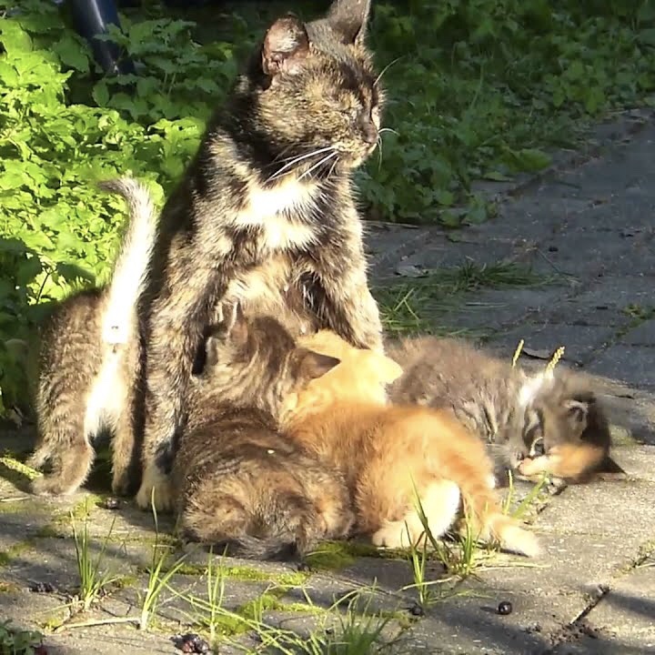 Четыре котенка, счастливая мать. Они делают с ней, что хотят. Мнут ее, толкают, сосут, когда вздумается, играют с ее хвостом, ушами, кусают, тянут, запрыгивают сверху, перепрыгивают, валяют по траве, делают под нее подкопы. Они уже в половину ее ростом и всё так же конопатят ей мозг. И кошка не реагирует вообще никак. Всё очень органично и спокойно у них там происходит. Они гиперактивно развиваются, а она как будто под транквилизаторами. Такая задумка природы. Она не воспринимает котят, как монстров, пытающихся испортить ее жизнь. Хотя со стороны всё выглядит именно так. Она их вообще никак не воспринимает. Они как ее рука или нога, ее часть. Кусают, запрыгивают, сосут, теребят, тащат. Четыре сразу.