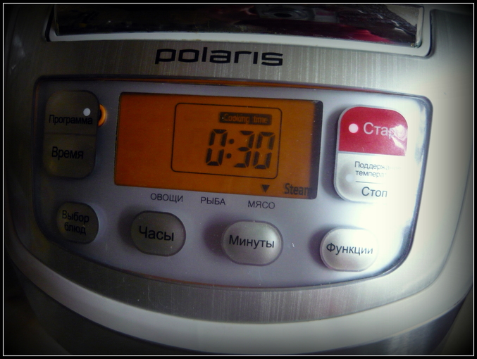 8. Установили нашу форму в мультиварку и поставили на 30 минут на режим Пароварка/Мясо.