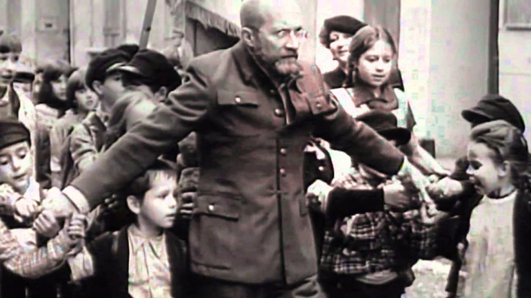 А потом пришла война. В 1940 году его "Дом сирот" перемещают в Варшавское гетто. В гетто Корчак отдавал все силы заботе о детях, героически добывая для них пищу и медикаменты. Даже в гетто Корчак не останавливал своей воспитательной деятельности. И там он торжественно и церемониально взял с детей клятву быть хорошими и честными людьми не смотря на окружающие обстоятельства