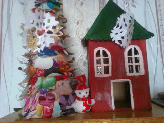 В новогодние праздники и на зимних каникулах девочки устав от ёлок,от фейрверков. снежных горок и прочего ничегонеделания ударились в творчество))) Поделка домик и ёлка-дело рук Зульфии и Галии...А рисунок - это рисовала Зульфия...