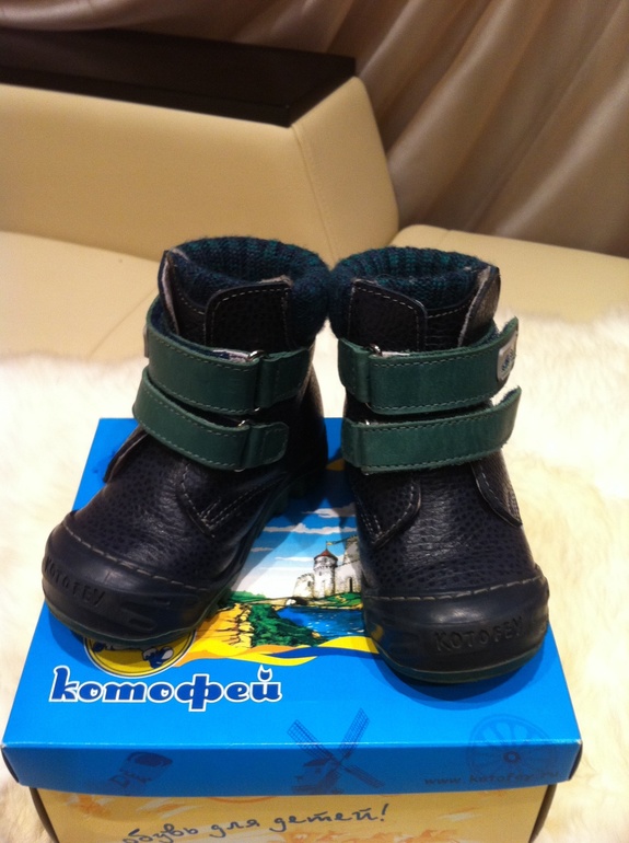 Ботиночки в идеале,без дефектов( носили силя в коляске)Обувь на холодную осень-весну.По стельке 12,5-13 см.Размер 21Но любой подъем за счет удобных липучек.Натуральная кожа с резиновым неубиваемым мысом,внутри войлочная подкладка и стелька.Отправлю почтой.