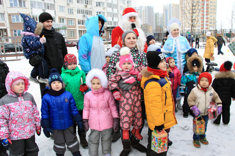 Как-то на выходных в соседнем дворе управляющая компания организовала праздник и мы на него попали! Мне очень понравилось! После праздника с другом Семёном и его папой катались с горки.