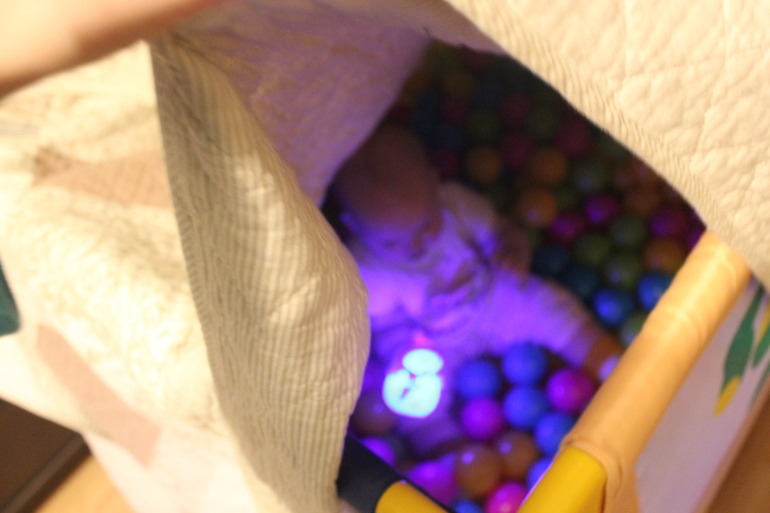 5. Построили "шалаш" в манеже, потом под кухонным столом, когда уже пришёл с работы папа. Я говорила "темно-светло" и откидывала одеяло. Алёна была удивлена! Мы играли в эту игру впервые. Гирлянду включили новогоднюю в доме для уюта) И снеговичка мигающего в ручки, чтобы не страшно было. Дочь начала выползать из-под стола и заползать снова с другого "входа") Так долго носилась) Любят детки нашего возраста цикличность!