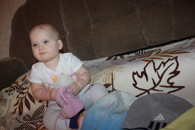 2. Играть с шапками. Показывала поочередно шапки мамы, папы, Алёнки, пупса. "Чья это шапка? Это шапка папы". "Это папина шапка? Да, это папина шапка". Ответа не дождалась, но, когда речь зашла о шапке мамы мы активно замамкали. И свою шапку всегда находила!!! Я проверила несколько раз не совпадение ли? Нет, на вопрос где Алёнкина шапка выбирала с уверенностью свою!) Вообще дочь терпеть не может головные уборы будь то шапки или повязочки. Ругается, срывает. Достала ещё одежду, объяснила что на какую часть тела одевается. В ответ Алёна попробовала на зуб всё, что было перед ней. Пока так. У пупса любит срывать шапку, я возвращаю на место. И так до бесконечности.