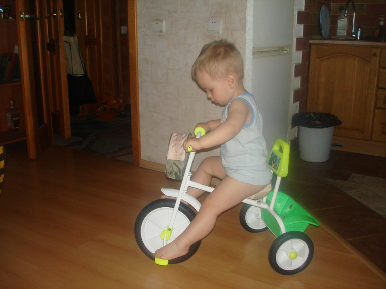 Мы заказали 3-колесный Малыш. Прямо с завода пришла посылка. Правда,интерес практически угас на данный момент. Педали шустро крутить не получается пока,в общем.есть-и хорошо))) Крутим колеса,катаем игрушки.
