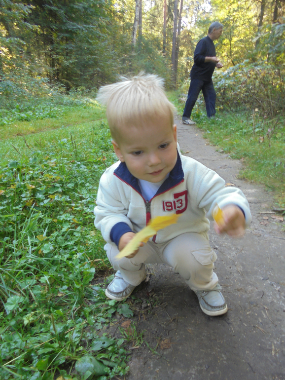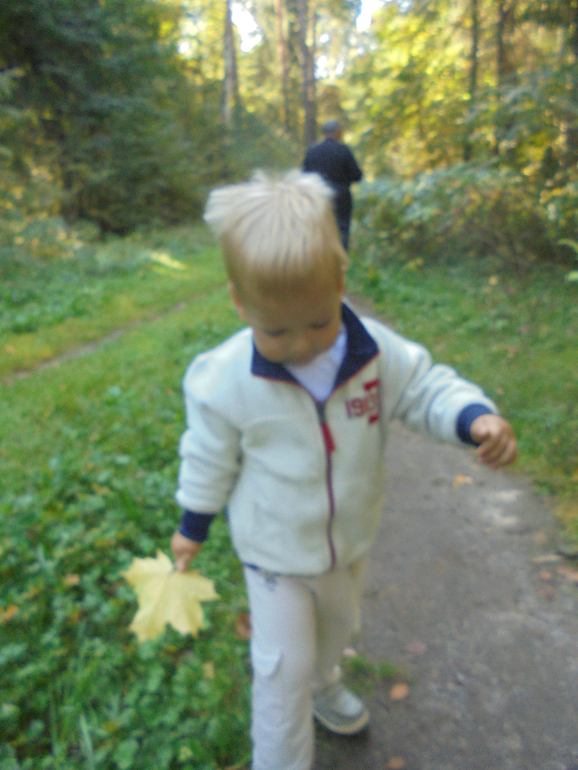 8 сентября была потрясающая погода и мы с нашим дедом отправились в парк. Макс сидел на шее деда и пел "раз иголка,два иголка-будет елочка!",потом мы ели последнюю в этом году лесную малину,собирали желтые листья, ковыряли любовались поганками )))