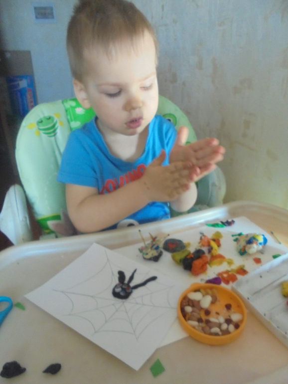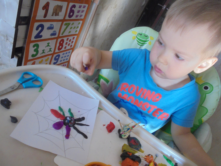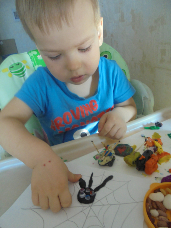 3. паук - вот тут повеселились! глазок приделали сколько поместилось,ножки делал сам!