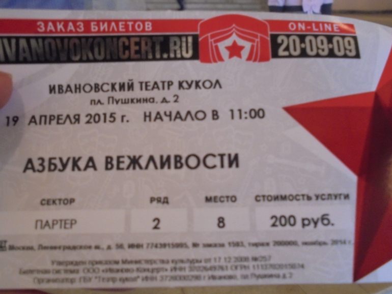 Ребенку понравилось,рассказывал дома потом про фею Здрасьте и злого Грубияна. Я водила старшую дочь в этот театр,вот теперь Максимкина очередь... Традиция игр в холле до второго звонка сохранена,детки в круг-актеры массовики-затейники.Макс,правда,растерялся и пришлось мне активно выполнять задания. Приятно,что ребенок подтянулся к игре вслед за мной:-) :-)