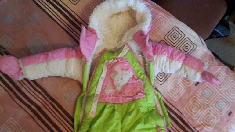 Продам комбинезон-трансформер на девочку оч теплый на овчине. Мех не отстегивается.Носили буквально 1,5 месяца.Я регион,поэтому почтой только.Почта с вас.Цена 900р.