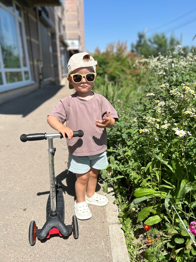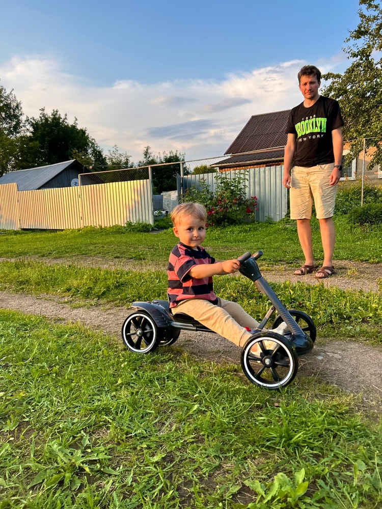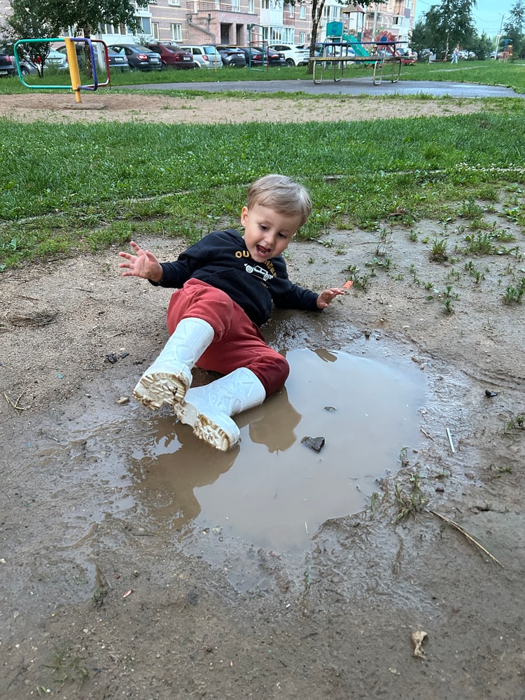 На самокате он частенько залетает носом в лужи. То ли случайно, то ли специально, сложно сказать. Предполагаю, предумышленно 😂