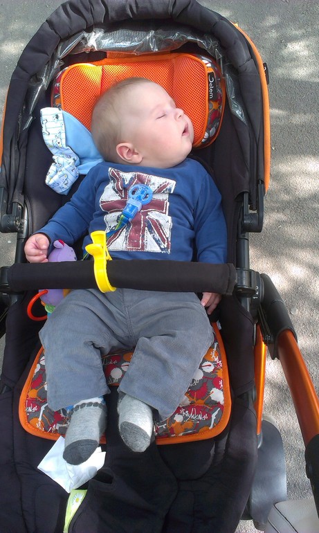 В коляске уже поставили прогулочный блок, думали, может так Кириллу будет все виднее вокруг и он все-таки поймет, как хорошо кататься в коляске...фигушки, не заценил сын наших стараний. Так что скоро и я стану качком)))