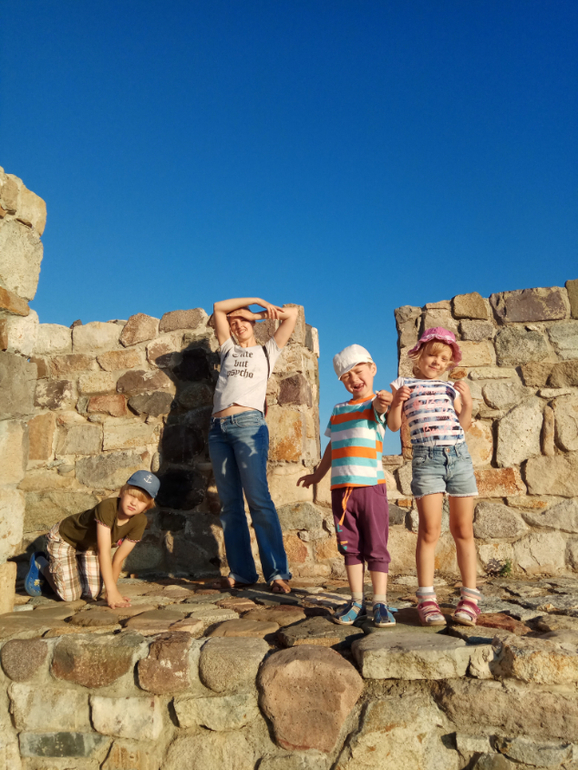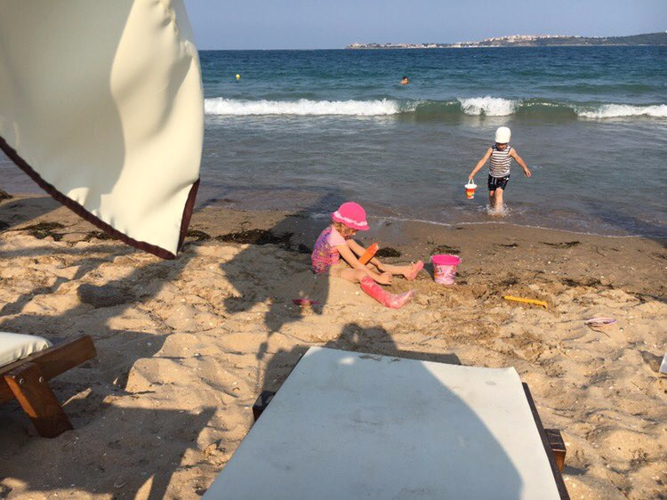 В остальном долетели хорошо...ну а тут -жара, море, друзья, мидии и вино )) Макара из воды вытаскиваю когда уже трясется весь и губы синие )) воды не боится, плавает в нарукавниках, ныряет, визжит и орет на весь берег . У них тут конечно банда уже , трое детей почти одного возраста - постоянно во что то играют, периодами дерутся , но при этом все время заняты и сами по себе )) было 2дня дождя и прохлады , мы пошопились и сходили в местную древность - византийскую крепость 5 века. Завтра плывём на кораблике , смотреть дельфинов )