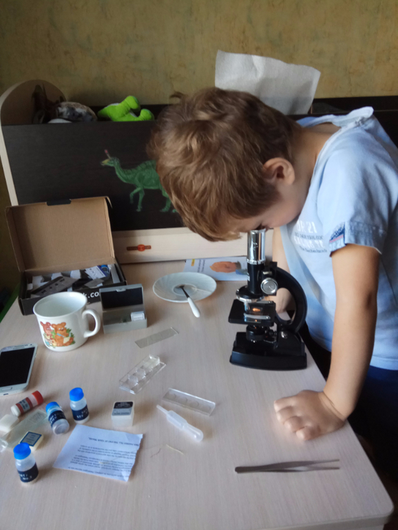 Макар 5-6 летНу вот , микроскоп же у нас теперь! Разглядываем , учимся 🤓 )) к настройке привыкнуть надо…. Макару конечно же надоедает ждать, если долго. Но я уже почти навострилась ) Микроскоп простой, клетки крови не рассмотришь, но оно и не нужно в 5 то лет , имхо!