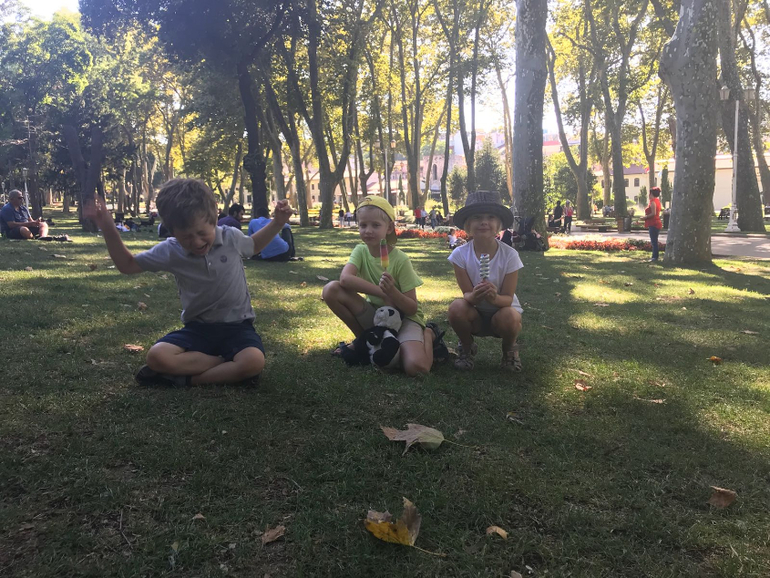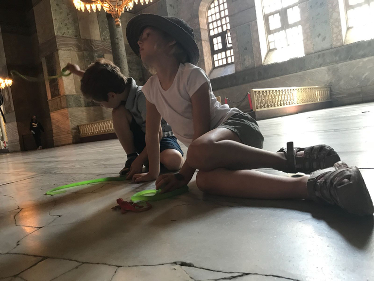 Болгария 2018Проснулись мы дружно чуть после 6, потому что наши окна выходят на крышу соседнего дома , а там пришли кошки и стали орать дурниной🙉🙈😵 (и орали каждый день, у них там какая то туса😬). Пока трое взрослых пытались прикинуться ветошью и не отсвечивать, а спать родители не сильно взрослых детей , как известно , умеют под любые звуки)) двое из детей кинулись к окну и требовали срочно спасти кошек ))) в общем кошки и дети поспать как водится не дали )) позавтракав на террасе с видом на Стамбул и море , мы выдвинулись в город. Отель у нас был маленький и недорогой, ничего особенного , но все , что нужно есть , чисто поспать можно, завтаком кормят и парковку для машины предоставляют , что ооочень большой плюс , и он в центре , до мечети Айя София и Цистерна Базилика идти мин 15 не спеша с детьми, гранд базар через дорогу , Галатский мост - тоже мин 15-20.Все же Турция похоже не хочет меня принимать )) в прошлый мой приезд я болела весь отпуск, ничего кроме отеля и куска моря в посл день не увидела )) в этот раз в цистернах была реконструкция, половина помешения была закрыта , вода спущена . Таня говорит без воды совсем не то...но все равно конечно впечатляет ...колона слез с дыркой для загадывания желаний ..знаменитые головы Медузы Горгоны в основании колонн. Потом пошли в Айя Софию , очередь была длинная, и мы не стали сильно сопротивляться , когда нас захомутал гид, который предлагал экскурсию нам на англ и проход без очереди. Таня строговалась на 30 евро за всех (3 взрослых +3 детей) 😁. Таня вообще тут как рыба в воде , торгуется с ними как своя)) . Дети опять занимали друг друга , точнее Макар с Полиной , Слава в этот год с ними "не дружит" и гоняет их в основном)) экскурсия, тем более на англ, как и сама мечеть , им была конечно пофиг, но они оч хорошо играли своими змеями и протерли ими всю священную пыль мечети 😂😂Потом гид нас конечно так просто не отпустил и потащил в свой магазин. На самом деле очень хороший и с хорошим товаром , недешевым . Но я бы не пошла, я не так люблю шоппинг , Таня захотела посмотреть)) вообще конечно навязчивый восточный сервис тут процветает )) если не хочешь никуда идти и ничего покупать , лучше даже не заговаривать и не отвечать ))) Потом мы обедали и передохнули . Решили идти в дворец Топкапы ...но по вторникам он оказался закрыт !!!🙈 Прогулялись по парку и пошли на набережную искать кораблик покататься . Там нас тоже быстро "нашли" и отвезли под белы ручки на кораблик за 25 евро на всех ) Стамбул оч красивый с пролива, особенно восточная часть ..европейская часть милая. Но глядя на восточную часть как то прям очень легко представляется древний богатый и влиятельный Константинополь. Центр мира! А потом мы пошли через гранд базар домой , это было уже начало 8. Восточный базар для европейского человека это конечно то ещё "удовольствие")) ооочень людно, шумно, пестро, и в общем дёшево . Хотя мы зацепили самый край базара, но мне хватило) Пока мы глазели на разные сладости и думали купить или нет , они как то закончились и началась одежда, постельное белье и тд...и ведь уже почти прошли все, как тут Таня решила померить Полине платьице ...и там мы зависли мин на 40 🙈🙈😵 . Макару я там подобрать ничего не смогла , какие то странные размеры - то велико , то впритык. Таня своим купила много и дёшево , но в конце мы получили абсолютно невменяемых от усталости детей. 