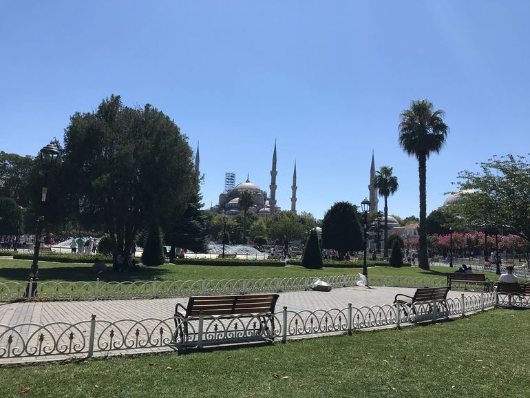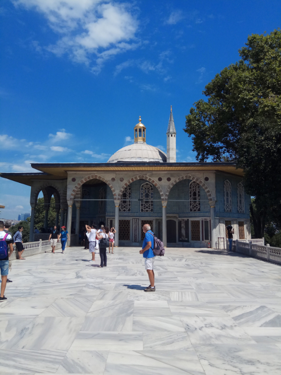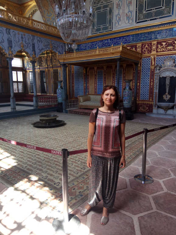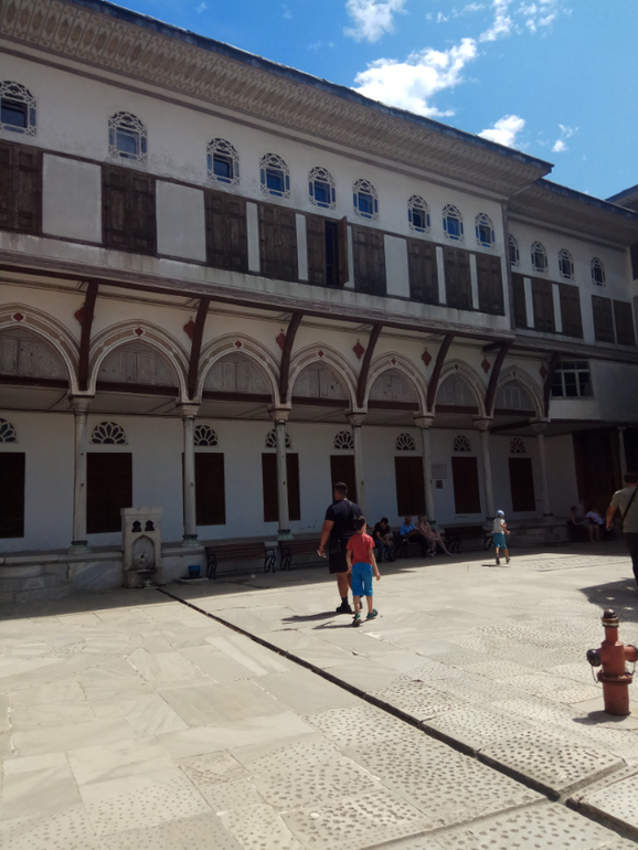 Голубая мечеть была в этом году совсем не голубая , вся в лесах и каком то полиэтилене. Притом это действующая мечеть , а не просто музей и мы решили с детьми туда не ходить...и решили все же сходить в дворцовый комплекс Топкапы. Это огромный комплекс, с кучей помещений, гаремом , где жила та самая Роксолана -Хюрем, сокровищницей со святынями и тд и тп.