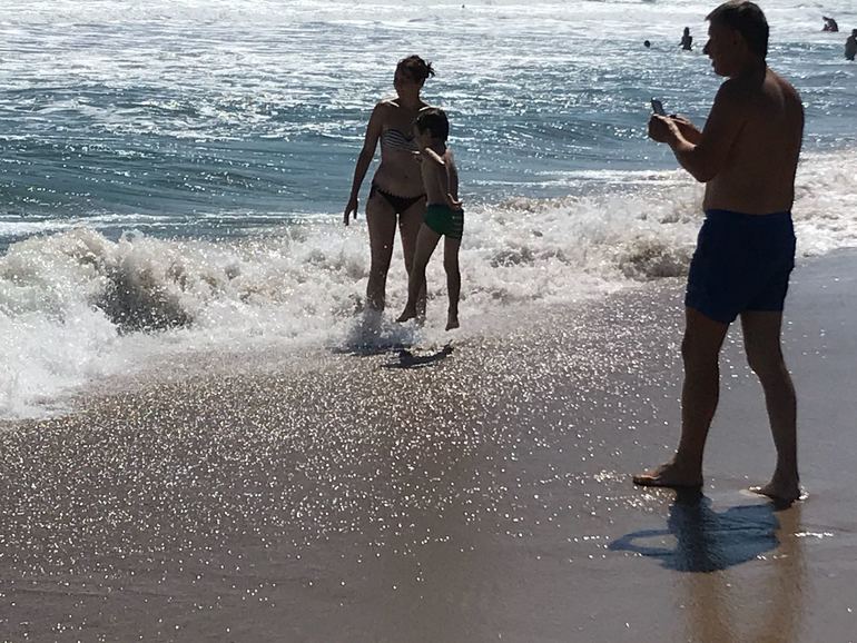 На дальних пляжах , как помню по прошлому году, буйки подальше и спасатели поспокойнее ...в этом году не пришлось увидеть там спокойное море , а волны реально сильные, и спасатели либо всех около берега держат и не дают далеко заходить в воду , либо вообще не пускают )) ну или можно пойти на край пляжа , где зона без спасателей, и уже на свой страх и риск плыть куда хочешь ... мы конечно так не делали )) мы детей сгоняли в кучу и к берегу не хуже этих спасателей )) в какой то момент прям хотелось одолжить мегафон у них)) или топали на другой край пляжа , где волнорез и спокойная вода и мелко - мелко долго.