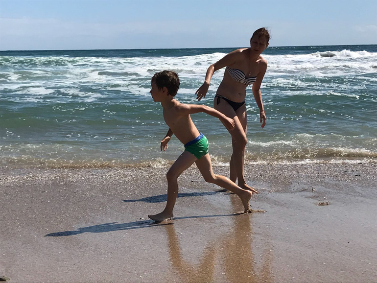 Дети конечно от волн в восторге , болтаются в них бесконечно. И я с ними, ибо Тане вода холодная все время )) она их с берега блюдет, я с моря )) уже хочется , чтобы волны и поменьше были б , чтобы они могли у берега сами поплескаться , а мы бы рядом посидели )