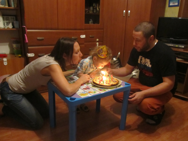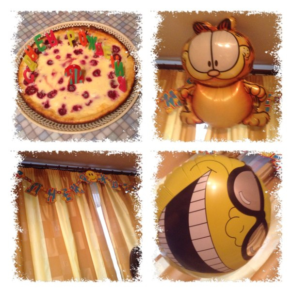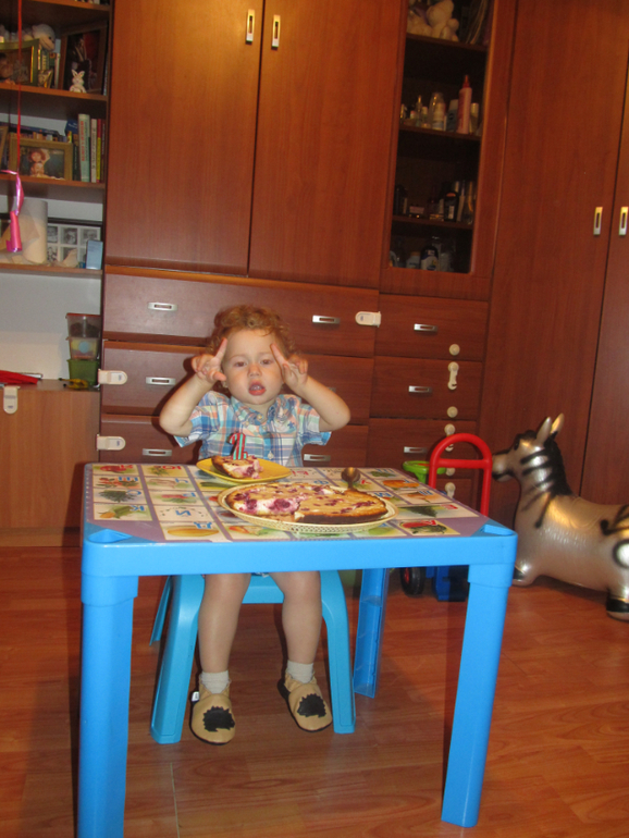Как то грустно сегодня …. Макар болеет - кашель, сопли, глаза больные, несчастные, капризы (( тяжелый это праздник - ДР .... но несмотря на нашу болезнь - а прям 13-го числа заболела еще и я, так что мы с ним вдвоем температурили весь день (но несильно ) - мы все же немного попраздновали в тесном семейном кругу. И была у нас диванная вечеринка )) бывает пижамная, а у нас была - диванная, так как почти весь день на диване провели )) Папа наш работал, бабушки, крестная - все тоже заболели, одна Яна нас развлекала. Ко второй половине дня, немного поспав в обед, собрав себя в кучку, все же испекла пирог Макароше, а к папиному приходу украсили немного комнату, приоделись, причесались и потом целый час был праздник -праздник ))) теперь ждем выздоровления и потом будет детский праздник, который должен был быть сегодня, но отменился из за болезни!