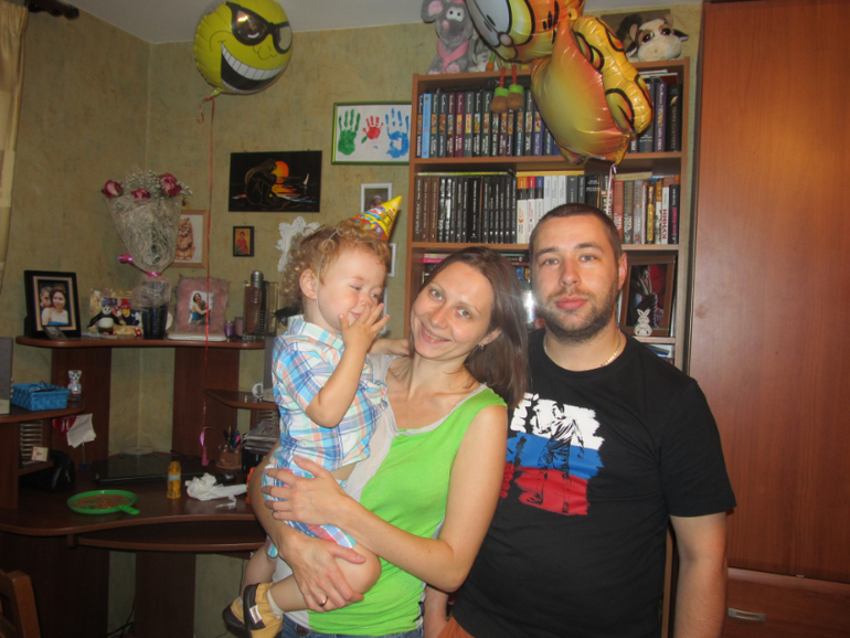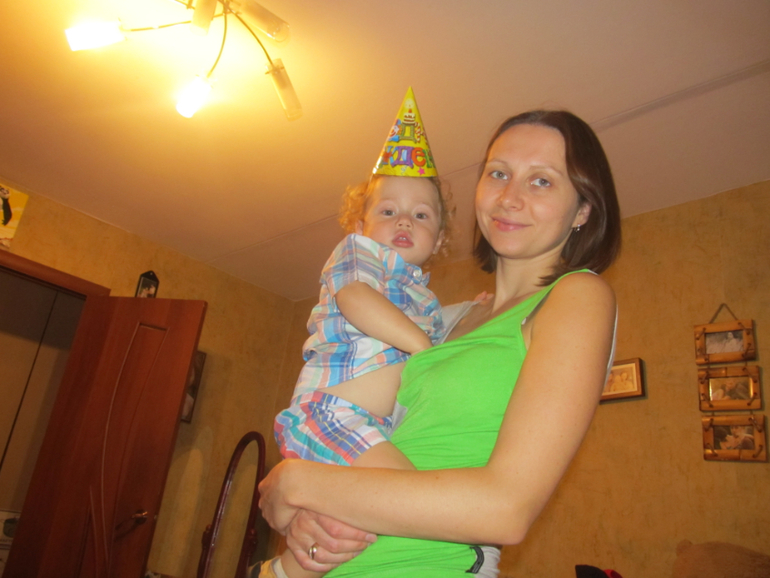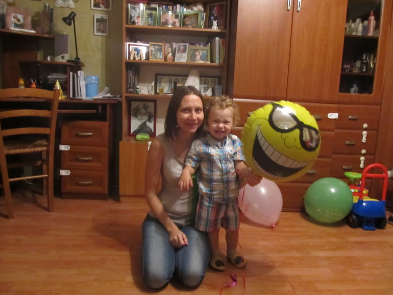с мамой и шариком от Яны. Это он старательно показывает как шарик улыбается ))) :