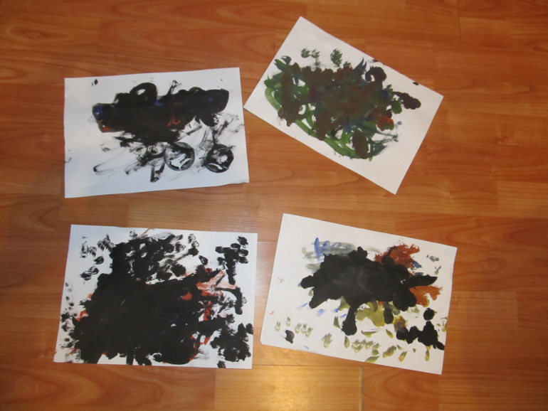 С папой тут машины рисовал, так там вообще рисунки в результате были похожи на карточки с кляксами, которые психологи используют в тестах «что вы видите на этой картинке» . Макар разукрасил машины на славу J))