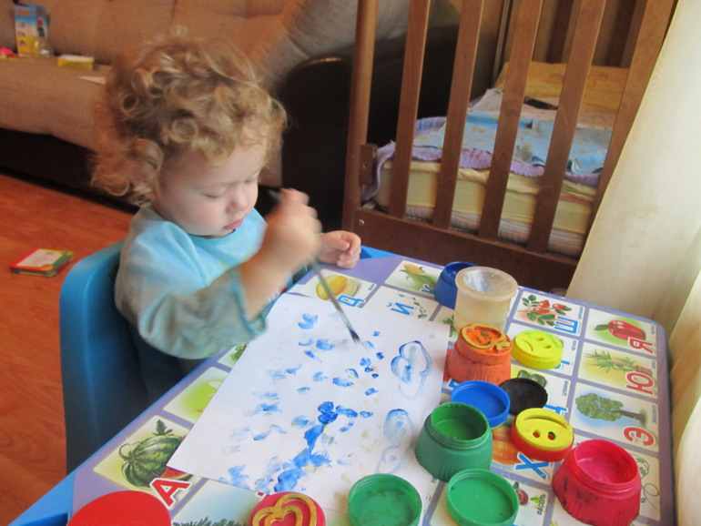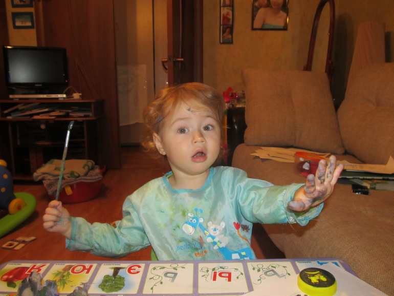 сегодня рисовали с ним долго прям, листов 15 наверно разрисовали, не меньше... попробовала с ним рисовать так- рисую круг или еще какую-нить фигуру, и говрю ему, что закрашивать нужно внутри, не заходя за пределы фигуры.. ну для первого раза неплохо ! он старательно мазюкал в центре, а когда я спрашивала, где еще не закрасил, показывал на зоны ближе к границе и начинал там красить.. ну там уже конечно за границы залезал . Но по крайней мере понимает, "внутри-снаружи" границ.
