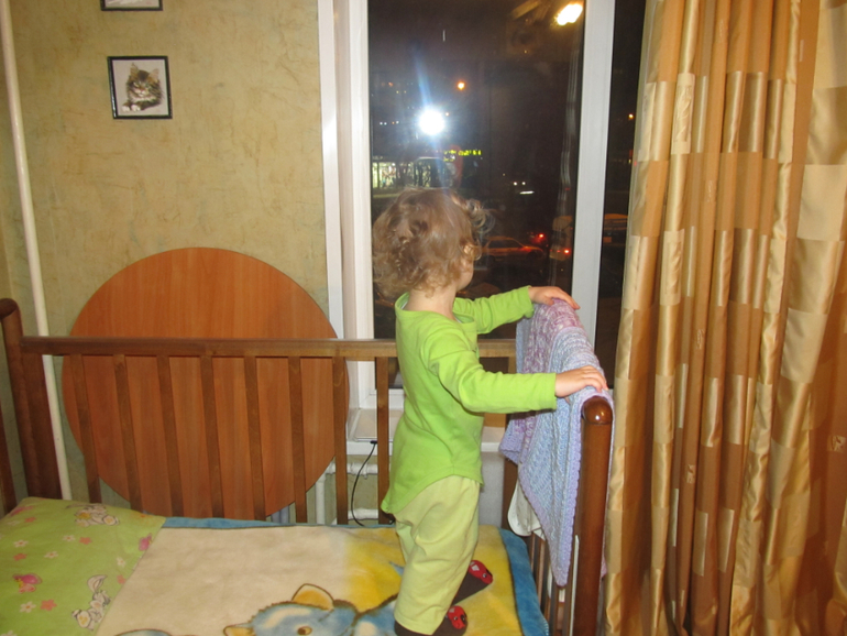 еще секунду назад Макар лежал ровнёхонько в кроватке, как приличный малыш, а не как внезапно заснувший в процессе беглец из Шоушенка ))