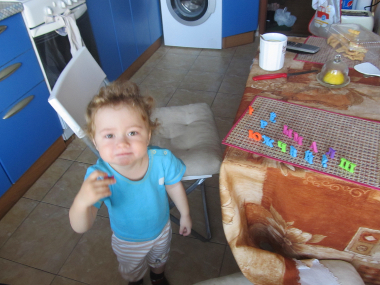 это его новое любимое занятие- снимать буквы с холодильника , выставлять их на стол или подоконник, а потом обратно - на холодильник крепить ))