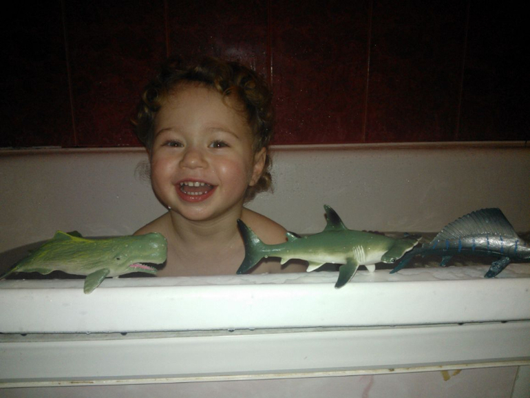 Обожает рыб и все, что с ними связано. С папой смотрит всякие передачи про рыбалку, играет с рыбалку на планшете (особенно, когда мама не видит), таскает своих игрушечных рыб везде, читаем про рыб книжки… в общем сейчас у нас время РЫБ!