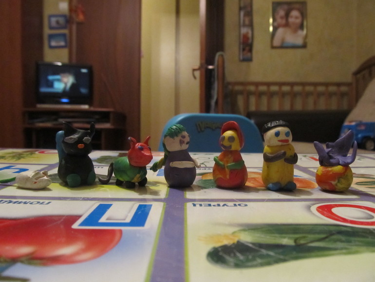 Вдохновившись примером наших друзей, мы тут на днях лепили сказку репку. За неимением другого материла - из пластилина. Лепила я . поэтому герои вышли монстрообразными, цвета диктовал Макар, поэтому монстры вышли кислотными ))