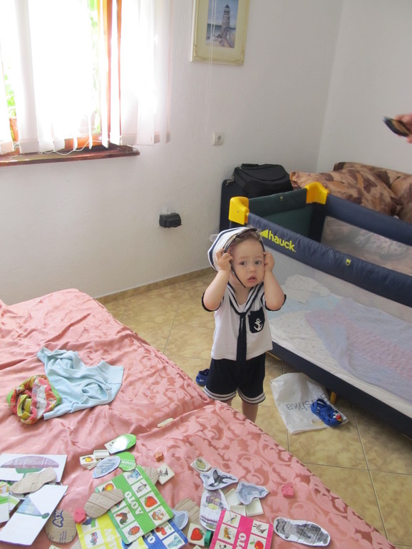 Сегодня в 9 утра толя уехал в аэропорт, его отпуск кончился ( Макар без температуры встал, щека еще припухшая, но меньше, по крайней мере не плачет и в рот не тычет … сейчас спит. Боюсь уже загадывать, что будет дальше . когда Толя уезжал , макар тыкал в машину и говорил "па-па, па-па", и тянулся с моих рук за машиной, я чуть не рыдала (( очень обидно, что наш совместный с Толей отпуск вышел весь вот так - наперекосяк (( мои друзья, которые живут тут по соседству неожиданно уехали по делам в Ригу еще 13го июля, должны были вернуться вчера, но задерживаются, непонятно когда теперь вернутся (( мы с макарохой одни. десять дней Толиного отпуска пролетели как день, с учетом приезда - пока обосновались, пока обжились, по магазинам побегали, городок изучили, один день макаркиной акклиматизации, полтора дня дождя, теперь вот уже четыре дня болезни - и все (( чистого отдыха на море вместе получилось дня 4 (( очень мало (( очень обидно (( очень хочется на море вместе, погулять вместе, пофоткаться… купили тут всем тельняшки, хотели фэмэли-лук ходить и фотаться.. но не успели, макарошка заболел… хотели на кораблике покататься, тоже не успели… особенно, если учесть , что в посл раз в отпуске мы были три года назад и тогда я болела весь отпуск … Толя ни тогда не отдохнул нормально, ни сейчас… мы то хоть еще тут хотя бы в море ножки еще помочим, я надеюсь ..)) Еще у Толи откуда то взялась аллергия на солнце, никогда в жизни не было!!! Неск дней мучился от пятен-волдырей на плечах, тоже штука неприятная… особо не расслабишься на улице …весь стол в номере завален лекарствами. . ну в общем грустновато , мягко говоря..