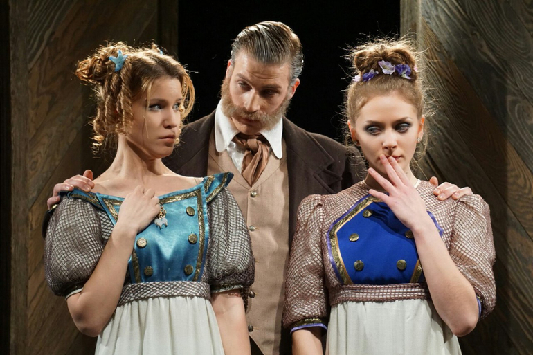 Вот самый что ни на есть водевиль мы и смотрели. А точнее даже два: "Урок дочкам" и "Беда от нежного сердца". Они идут подряд. Нашли, наконец, с мужем спектакль, который понравился обоим: весёлый, красивый, яркий, с интересным (хотя и предсказуемым) сюжетом, с песнями и плясками. Если вы хотите отдохнуть и посмеяться, берите билеты на качественный водевиль.