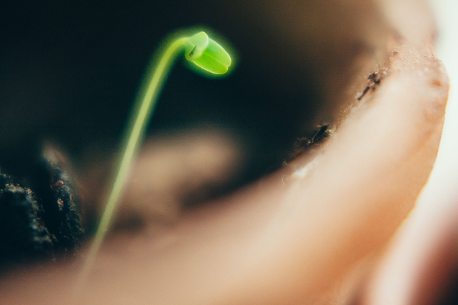 Пока выросло неизвестное растение в горшке с семенами акации и старым кориандром. Найденный в снегу стручок робинии, которую в нашем городе зовут акацией, стал частью исследовательского эксперимента. Теперь гадаем и любуемся ростком с пятью цепляющимися стебельками и листьями, собранными по шесть вокруг стебелька.