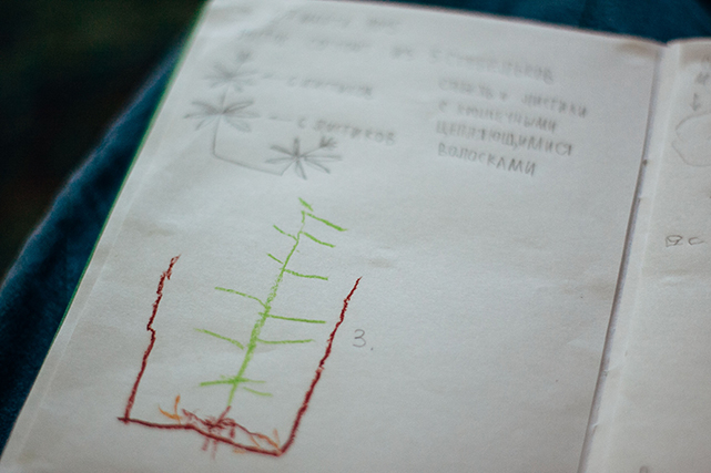 Форзацы книги - это наш дневник Камеральных исследований, один в один. И сегодня до посадки мы разглядывали семена трав с помощью лупы, описывали, измеряли и зарисовывали в блокнот так же, как Бруно в свой дневник. А ещё Лёва угадывал растения по семенам, составляя пары - пакетик с картинкой и семечко.