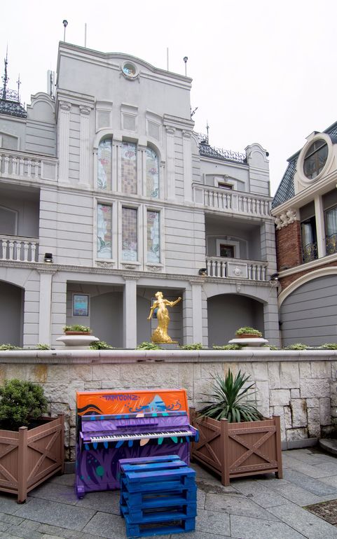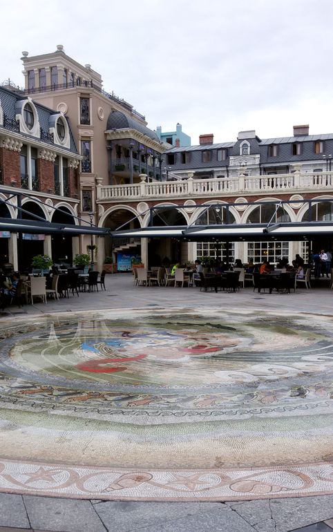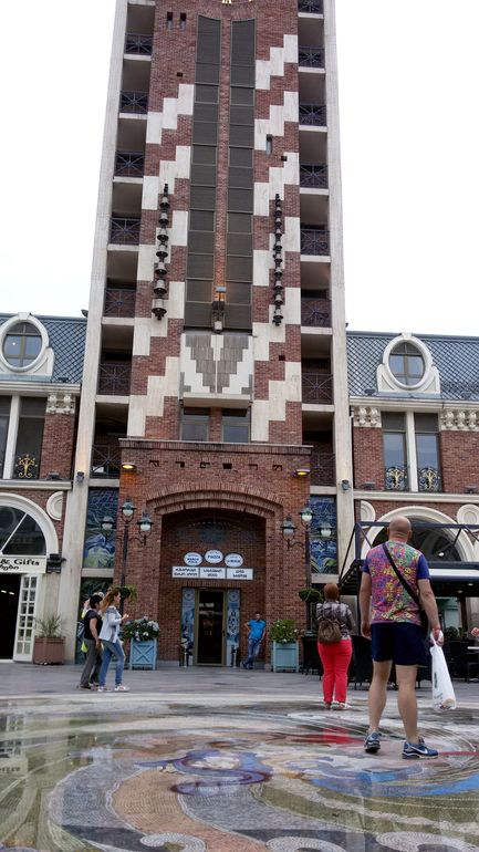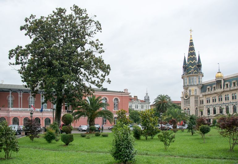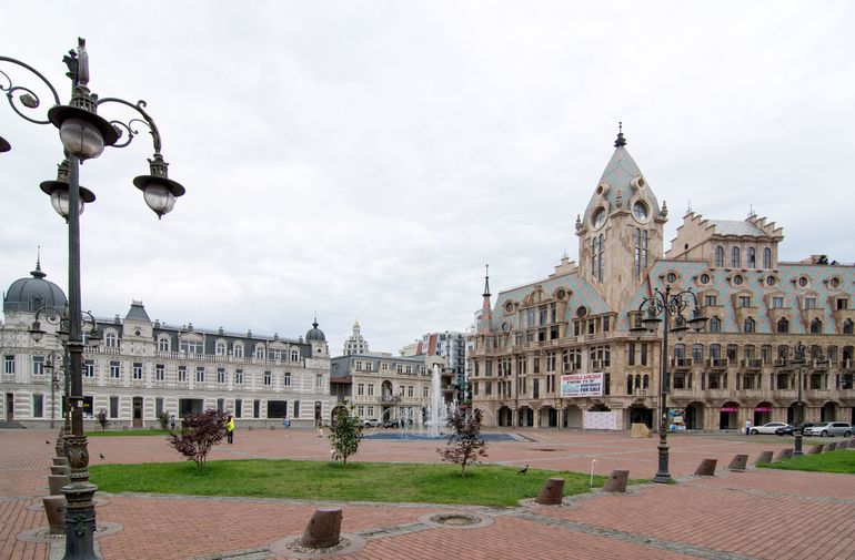 Площадь Пьяцца. Одно из самых красивых мест в Батуми, которое, как можно догадаться по названию, сильно напоминает итальянские площади, что немного странно увидеть в Грузии. Но в Батуми, когда дело касается архитектуры, похоже, что подходит все! Площадь занимает около 5700 кв. м и окружена комплексом с одноименным названием, который включает отель, рестораны, паб и кафе. В архитектуре уникально использована мозаика и витражи.