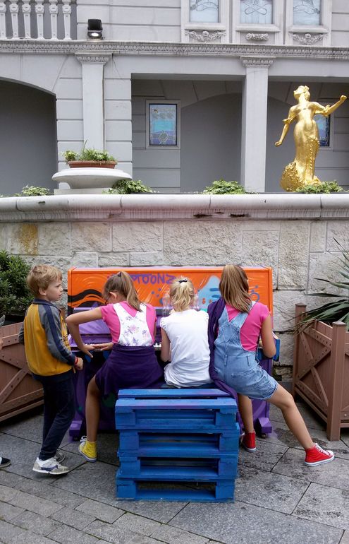 Накрытые от дождя пианино мы встречали довольно таки часто. Интересная задумка: идешь ли по улице, проходишь ли через площадь , и ... Бац!" Рояль в кустах"))) сел ,поиграл ,дальше пошел..)))