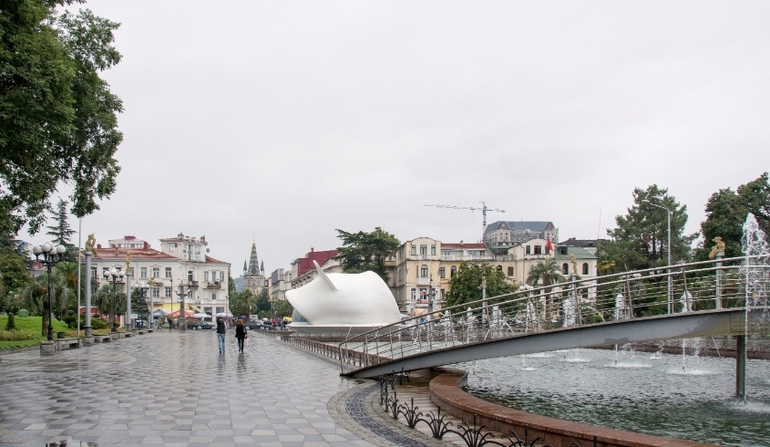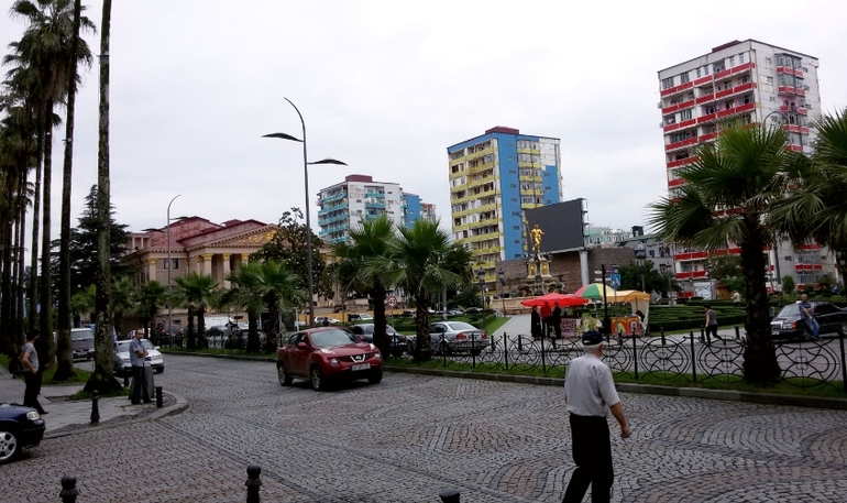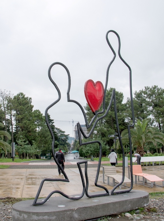 И пошли мы гулять по городу, начиная с набережной. Украшением города является Приморский парк - бульвар, протянувшийся на 8 км вдоль пляжа, улиц Ниношвили и Руставели. До конца мы его не догуляли)) хотя там оказывается было что посмотреть. В следующий раз и при хорошей погоде!)))