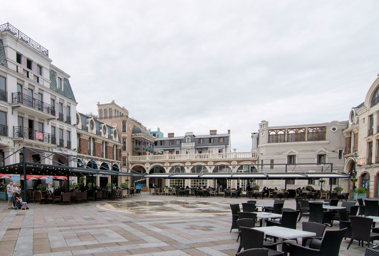Каждый вечер, придя сюда, вы можете послушать романтическую живую музыку и каждые три часа красиво играющие музыкальные часы с выезжающими фигурками. Вся эта красота дополнена ресторанами, кафешками и барами, где можно приятно провести время. Площадь в вечернее время:
