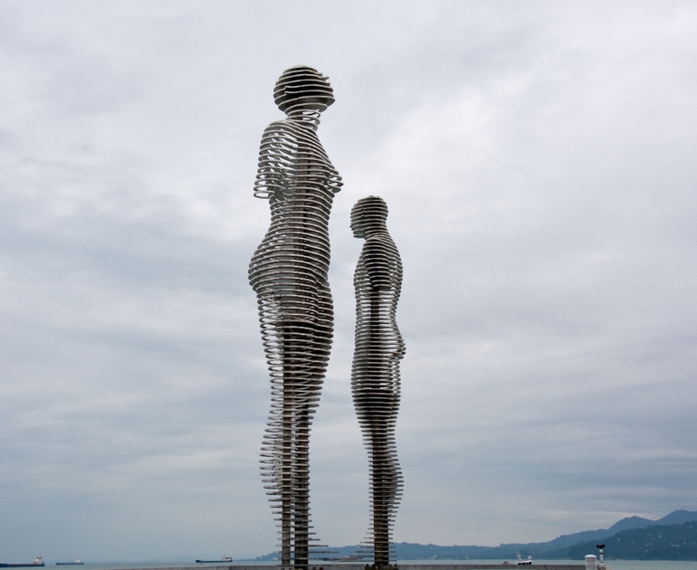 Скульптурная композиция " Любовь". Али и Нино вращаются, вечером еще и подсветка.