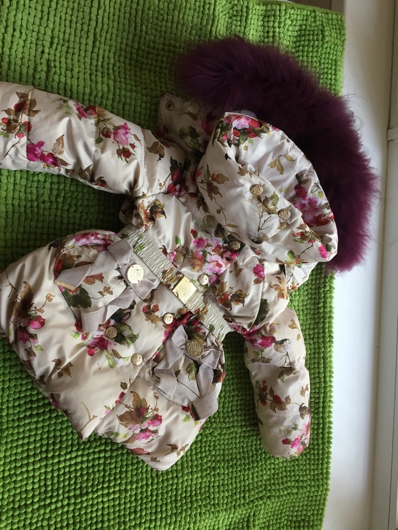 Костюм очень теплый! На капюшоне мех енота натуральный, мех и капюшон съемные!