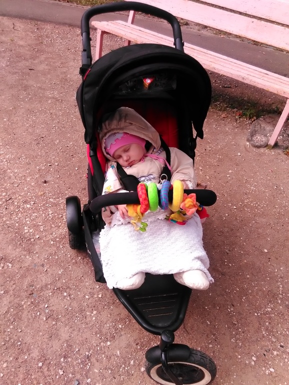 Вот уже пару дней как пересадили малышку в основное сиденье(полгода ей в воскресенье, она уже садится), и наши прогулки резко удлиннились - Дуняше очень нравится так ездить! Только я после четырехчасовой прогулки прихожу без ног))
