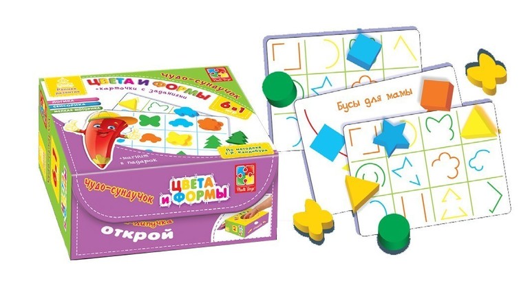 | Чудесная игрушка в виде сундучка на липучках, с помощью которого Ваш малыш: - выучит геометрические формы и контуры; - научится угадывать предметы всего лишь по его контуру или даже его части (для этого есть специальные карточки); - закрепит свои знания о цветах, понятиях "твердое/мягкое" и "часть/целое" (из мягких пластинок можно выдавливать детали и обратно их вставлять). Состав набора: 24 фигуры, 8 карточек. |