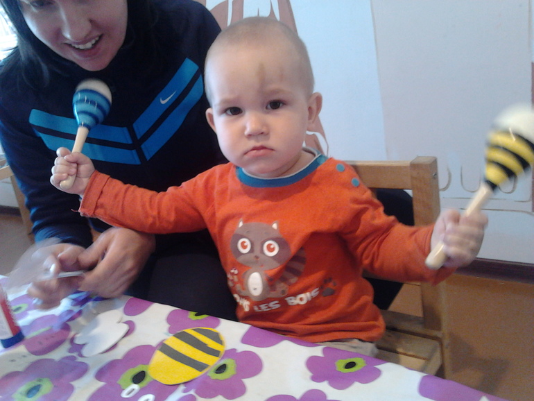 Музыка. Научить слушать и различать звуки; играть в игры, развивающие чувства ритма и умение двигаться в такт музыки и стихотворения; выполнять танцевальные движения, звенеть погремушками и маракасами в такт, сравнивать звуки колокольчика маленького и большого; играть на инструментах: металлофоне, барабане, бубне.