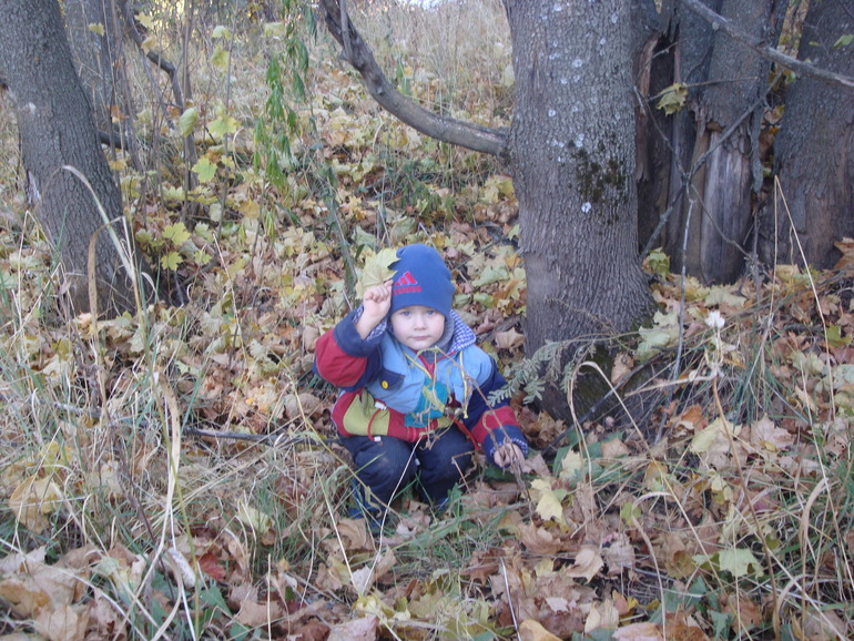 Ну и напоследок, фотка из леса. Юра играет в подосиновик))))